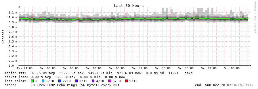 traceroute to 2606:4700:4700::1111 (2606:4700:4700::1111), 30 hops max, 80 byte packets - Generated at 2025-12-28 00:30:01