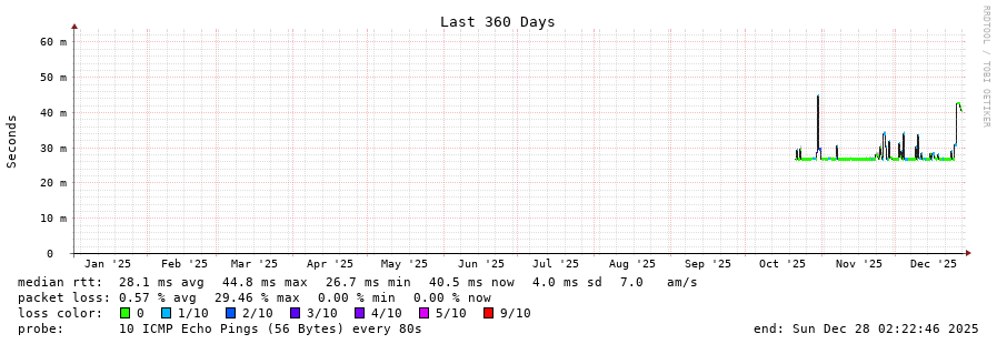 traceroute to 141.85.160.26 (141.85.160.26), 30 hops max, 60 byte packets - Generated at 2025-12-28 00:30:01