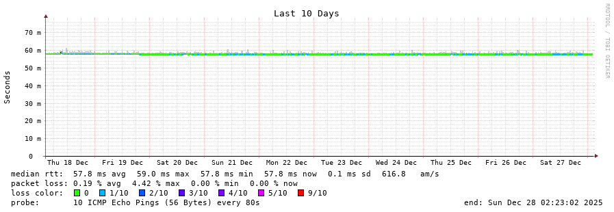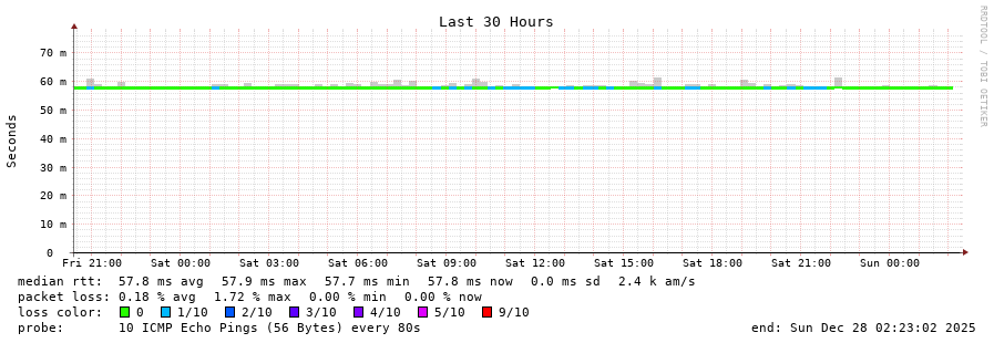 13 > 85.122.180.14 (85.122.180.14) [AS48141] 58.025ms 57.650ms 57.576ms