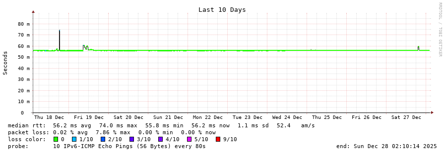 traceroute to 2a03:8f84::f1b6:9702:29c:9062 (2a03:8f84::f1b6:9702:29c:9062), 30 hops max, 80 byte packets - Generated at 2025-12-28 00:15:01