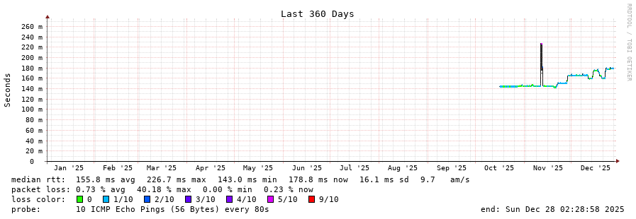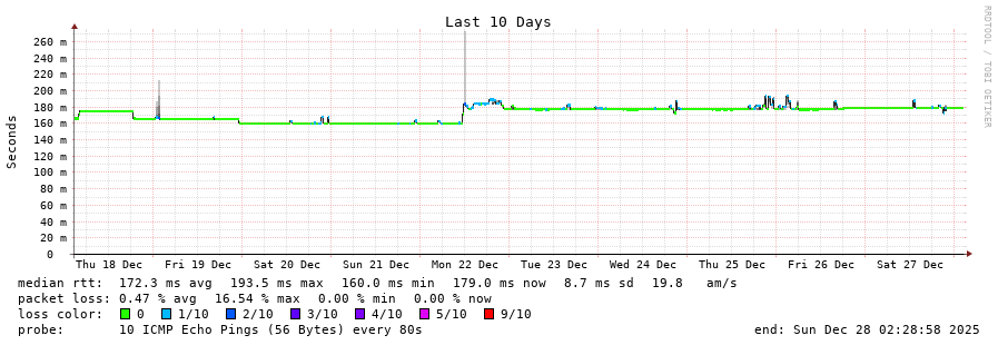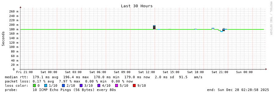 12 > 89.221.41.155 (89.221.41.155) [AS6762] 134.276ms 134.143ms 134.223ms