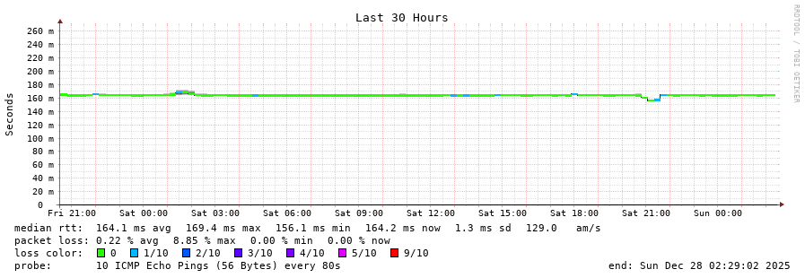 15 > 190.103.31.77 (190.103.31.77) [AS264628] 164.623ms 164.484ms 164.588ms