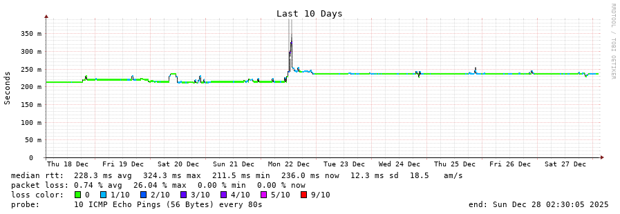 traceroute to 45.177.210.53 (45.177.210.53), 30 hops max, 60 byte packets - Generated at 2025-12-28 00:30:01