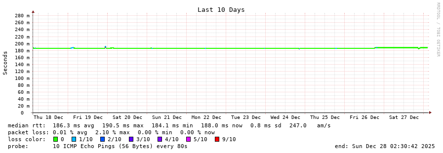 14 > 181.233.24.213 (181.233.24.213) [AS271835] 187.989ms 187.982ms 187.970ms
